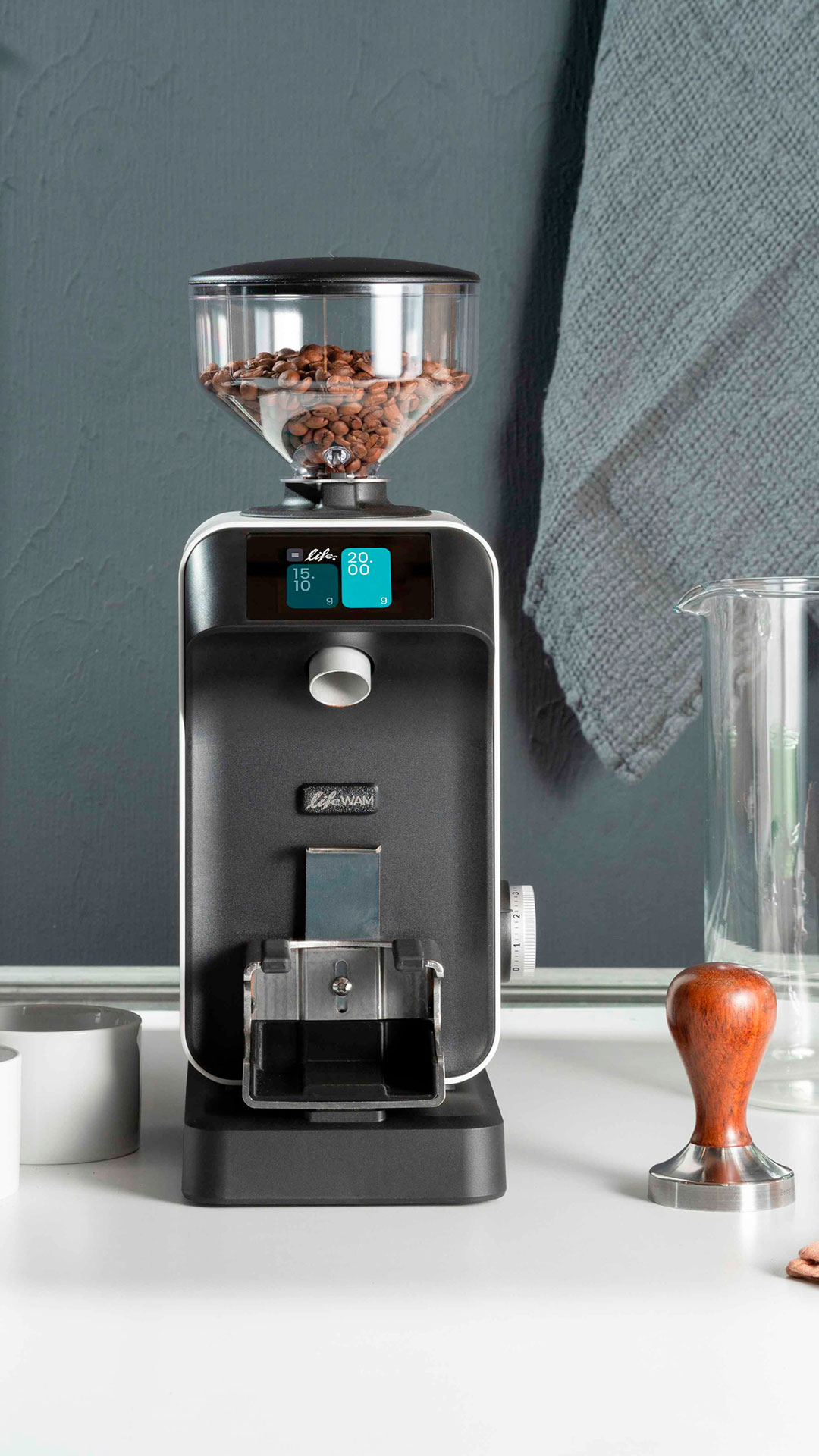 The Life Wam model expands the concept with an integrated scale, shifting the experience from time-based to weight-based grinding. The UI was rethought to display grams instead of seconds, giving users new levels of control and accuracy. Here, interaction design directly enhances product performance, creating a workflow that feels precise and easy to master for coffee lovers.